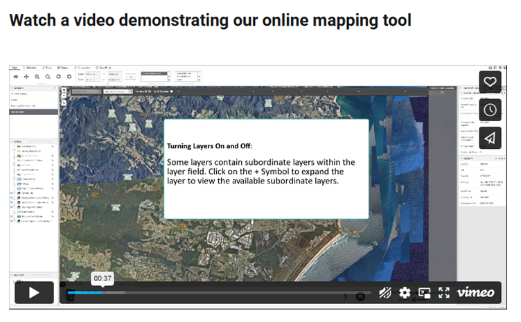 Customers can access the City’s online mapping on its Website: Online mapping tool | City of Coffs Harbour. Instructions on accessing the mapping are provided through a video.